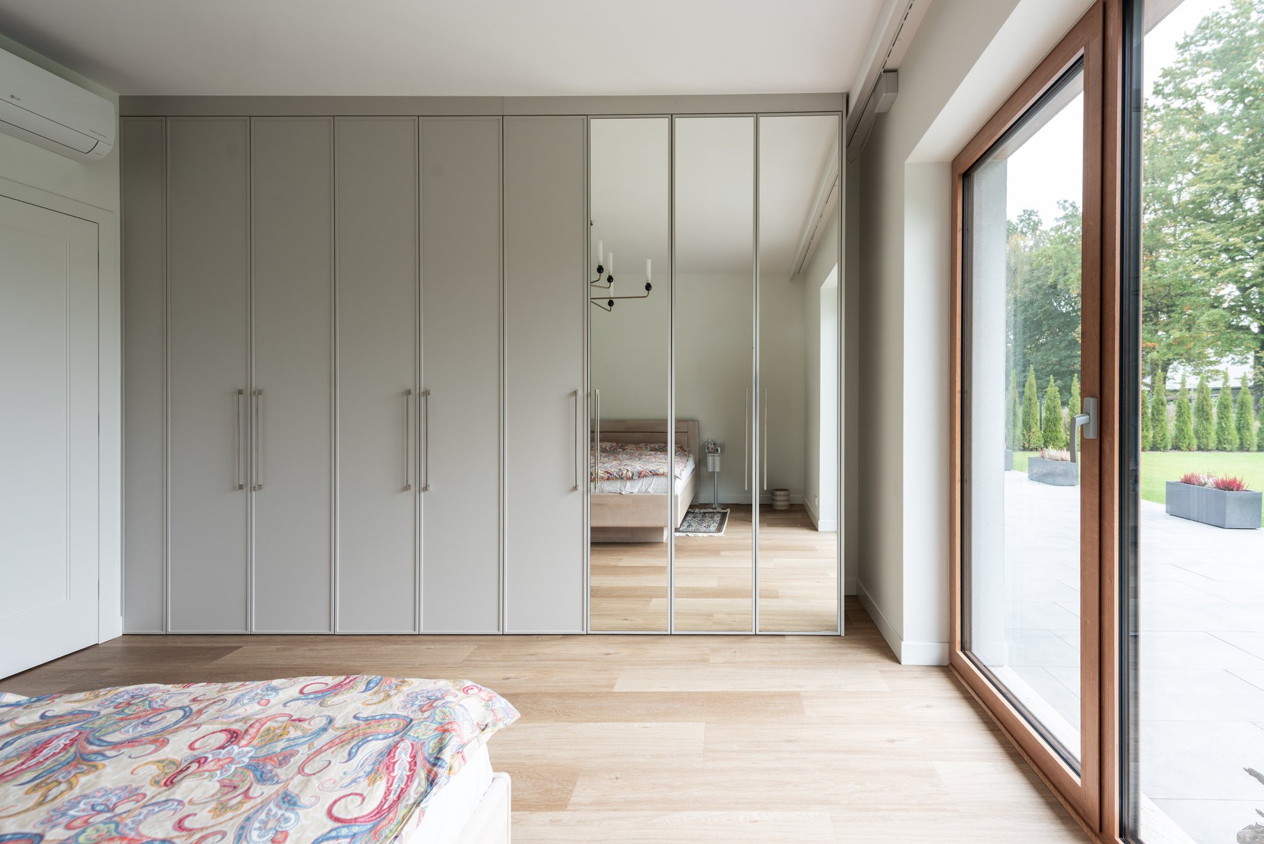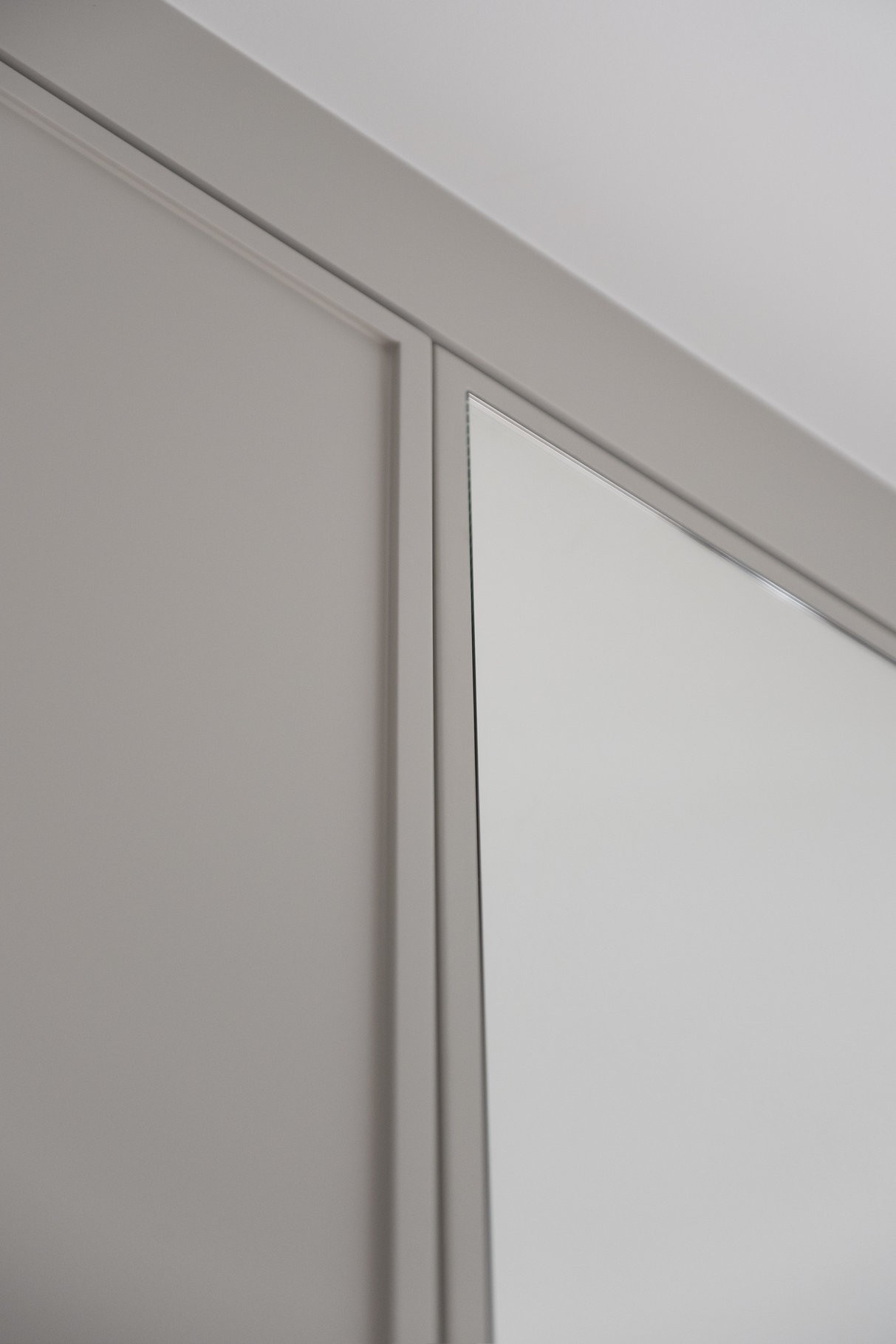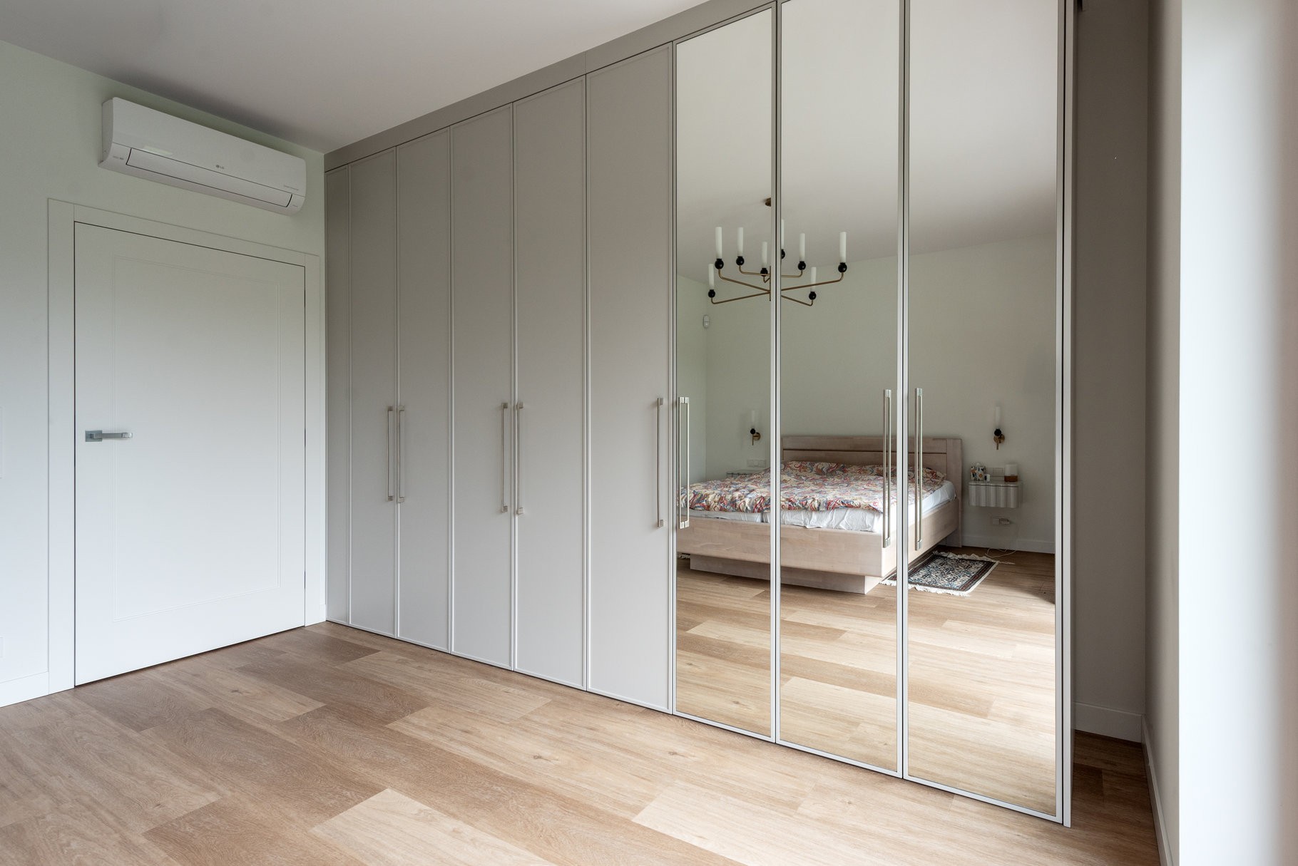 Gra luster: Fronty pokryte taflą lustra na całej wysokości nie tylko optycznie podwajają metraż pomieszczenia i wpuszczają do niego więcej naturalnego światła, ale też stanowią funkcjonalne, pełnowymiarowe zwierciadło.